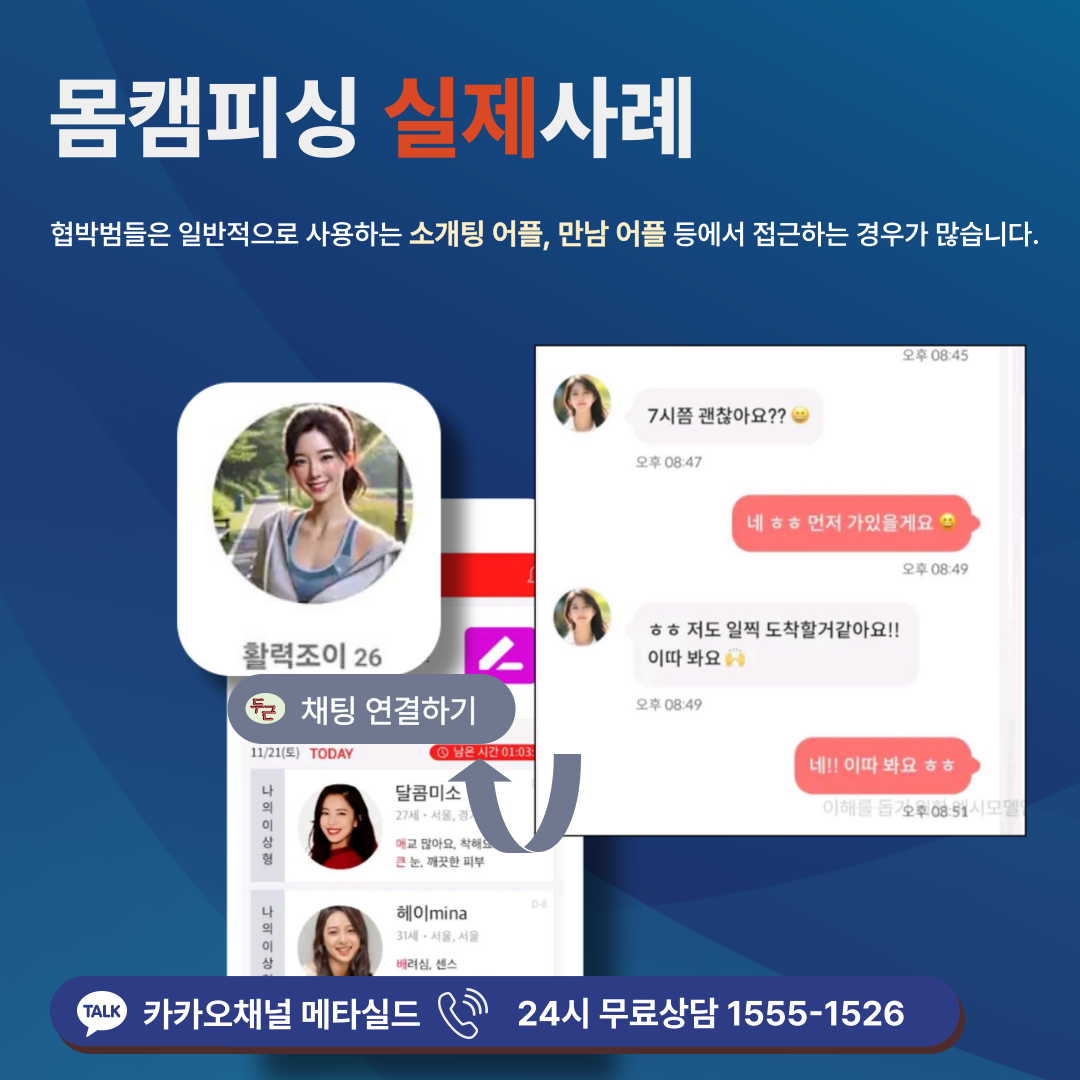 만남어플사기란 온라인 데이팅 앱이나 SNS를 이용해 친밀감을 쌓고 금전, 투자, 신분, 영상 등을 요구하며 피해를 발생시키는 범죄입니다.